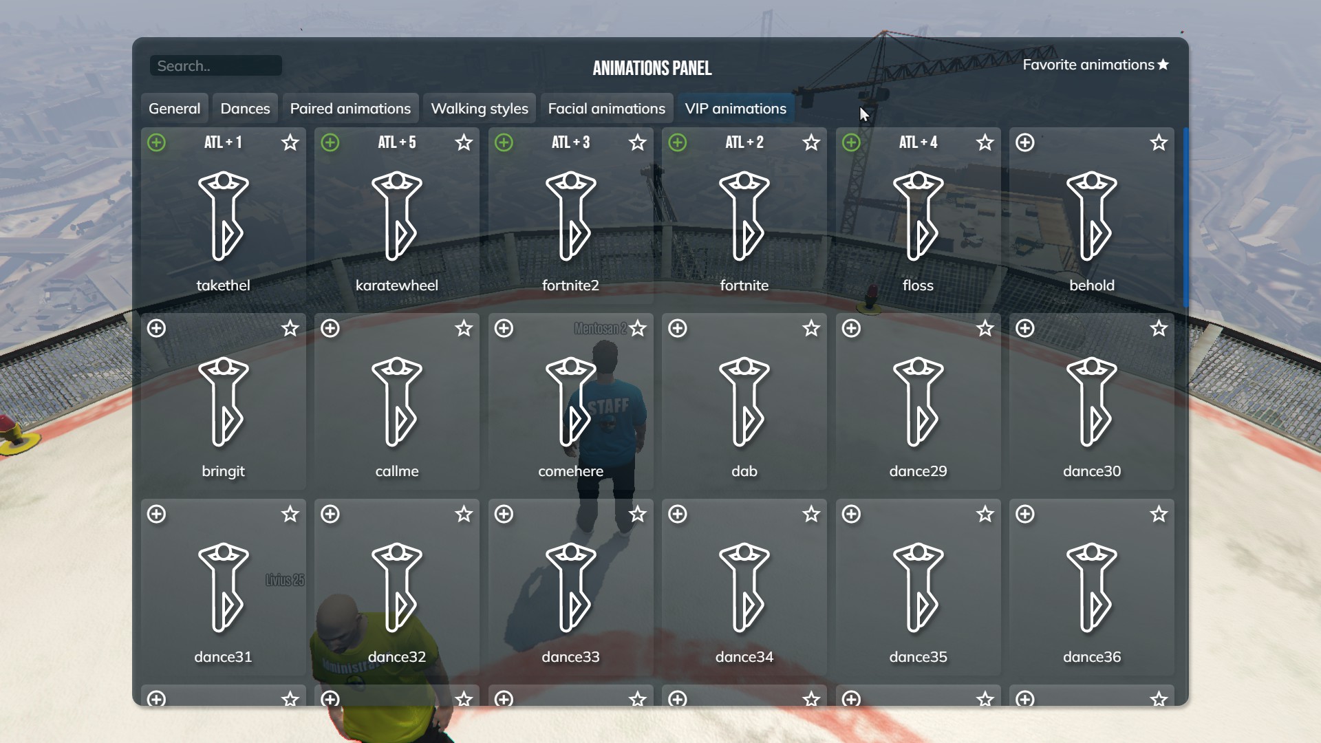- Interfata de animații permite setarea la favorite a unor animații, search-ul mai rapid, dar și salvarea unora pentru a le folosi rapid (ALT + 0-9).